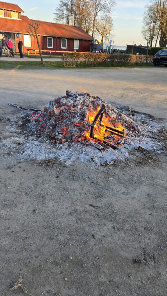 Das Osterfeuer selbst bildete – wie jedes Jahr – den zentralen Treffpunkt und sorgte für eine gemütliche Stimmung bei Einbruch der Dämmerung.